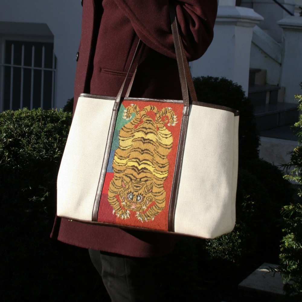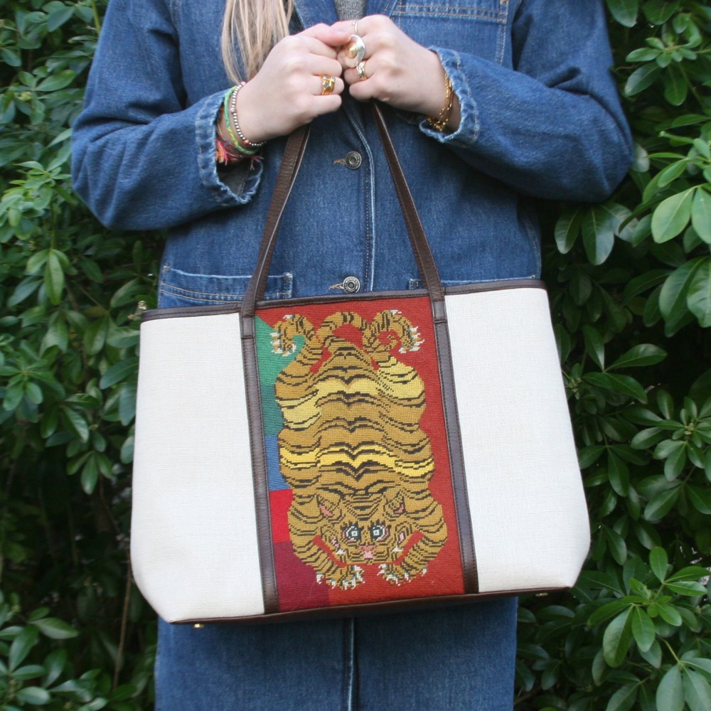 Canvas tote with needlepoint panel